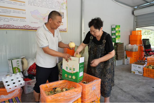 ![]() 图为,果农在梨园采摘梨子。 8月13日,走进陵江镇江南村黄金梨产业园,金灿灿的果实压弯枝头,饱满的果实在枝叶间若隐若现。果农们头顶烈日忙着采摘、分拣、装箱,脸上洋溢着丰收的喜悦。 “今年黄金梨长势特别好,个头大、甜度高,今年我种了130余亩的梨子,预计能收150吨,收入在50万左右!”种植大户彭仲德表示。 ![]() 图为,收购商在农场对梨查验。 果园外的临时集散点,来自各地的收购商早已等候在此,对着刚运出的黄金梨仔细查验。来自德阳的收购商钟学良正和果农核对数量,他的货车旁已堆起不少装箱的梨子。算上今年,钟学良已经是第十一年头来苍溪收黄金梨了。他直言,这儿的梨一年比一年长得好,黄澄澄的还透着亮,个头也比去年匀称,今年他准备收5吨多梨子到德阳销售。 丰收的喜悦不仅在果园里弥漫,更延伸到了游客云集的梨博园。在梨博园外围的临时售卖区,刚从附近果园运来的黄金梨堆成了小山,晶莹的果肉透着水润光泽,引得不少游客驻足。 “今天来这里看到有卖苍溪黄金梨的,就买了几箱。刚才剥开一个,这果肉又白又嫩,咬一口甜丝丝的,汁水还特别多,这趟没白来,得多带点回去给孩子尝尝!”游客王银芳说道。 ![]() 图为,游客在农场购买黄金梨。 与此同时,为让“金果果”既产得出又卖得好,苍溪县创新举措,将农产品集散中心直接建在果园周边、交通枢纽节点及物流园区等地,构建起“田间到市场”的快速通道。在位于苍溪县陵江镇孙坪村农产品集散中心,记者看到,刚从果园运来的梨子经过初步分拣、包装后,直接装上等候在此的冷链货车,即将发往重庆、成都、广州等全国多个城市。 “我们集散中心,一头连着果园里的果农,一头接着全国各地的市场,就是个‘黄金枢纽’。果农清晨摘的梨,检测员当场就能测糖度、看品相,合格的直接进分拣线,分级、套袋、装箱一条龙,最快两小时就能装上冷链车。我们让大家安心种好梨,把苍溪黄金梨的牌子越做越响。”苍溪县陵江镇孙坪村农产品集散中心负责人白启平介绍道。 从枝头到舌尖的畅通链路,让苍溪黄金梨实现了“产得出、卖得好”。数据显示,截至目前,当地黄金梨已销售近3万吨,带动全县3.2万余户农户户均增收4000元。金黄的梨子变成了“致富果”,集散中心架起了“增收桥”,苍溪大地上,一幅产业兴旺、百姓富足的乡村振兴画卷正徐徐展开。 来源:地方发展通讯社 责编:文策 荐稿:徐竞瑜 |
