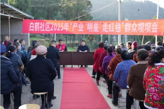 张俊&王韬讯 锣鼓喧天庆丰收,红毯熠熠敬奋斗。11月20日上午,四川省苍溪县白鹤乡白鹤社区三组聚居点热闹非凡,一年一度的“产业‘明星’走红毯”群众坝坝会在此举行。活动现场,通过情景剧演绎红色记忆、群众代表畅谈变迁、政策宣讲、“以奖代补”现场兑现等,既晒出了产业发展的丰硕成果,更凝聚起乡村振兴的磅礴力量。