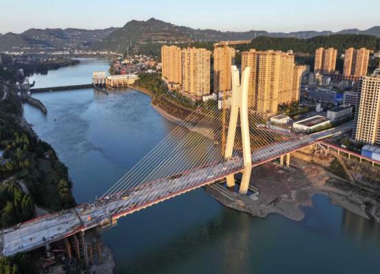 杨果讯 11月25日,冬日的暖阳倾洒在嘉陵江畔,建设中的苍溪县肖家坝大桥桥面上,20余名工人身着安全工装,正有条不紊地进行主塔涂装以及水电安装等附属工程施工。