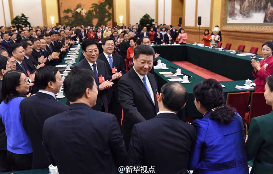 习近平:民有所想所求,我们就要为他们服务 习近平8日上午参加湖南省代表团审议,强调要补齐民生短板。党的十八大以来,习近平的国内考察“路线图”覆盖了不少贫困村。总书记说:“抓工作不能狗熊掰棒子,去过的每个地方都要抓反馈。有关部门都派人去看过,有的打招呼,有的不打招呼,看到是在认真抓落实,这很好。”习近平强调:“要坚持以民为本,民有所想所求,我们就要帮助他们,为他们服务。” 习近平向全国各界妇女同胞致以节日问候 8日上午,习近平参加湖南代表团审议。正值三八国际劳动妇女节,总书记代表党中央、国务院,向女代表、女委员、女工作人员和全国各族各界妇女致以节日的祝贺和诚挚的祝福。会议结束时,习近平同代表们握手道别。女代表纷纷围拢过来,向总书记表示感谢。习近平再次向妇女同胞表示祝贺。(新华社记者霍小光,摄影兰红光、饶爱民,新华视点微博报道)