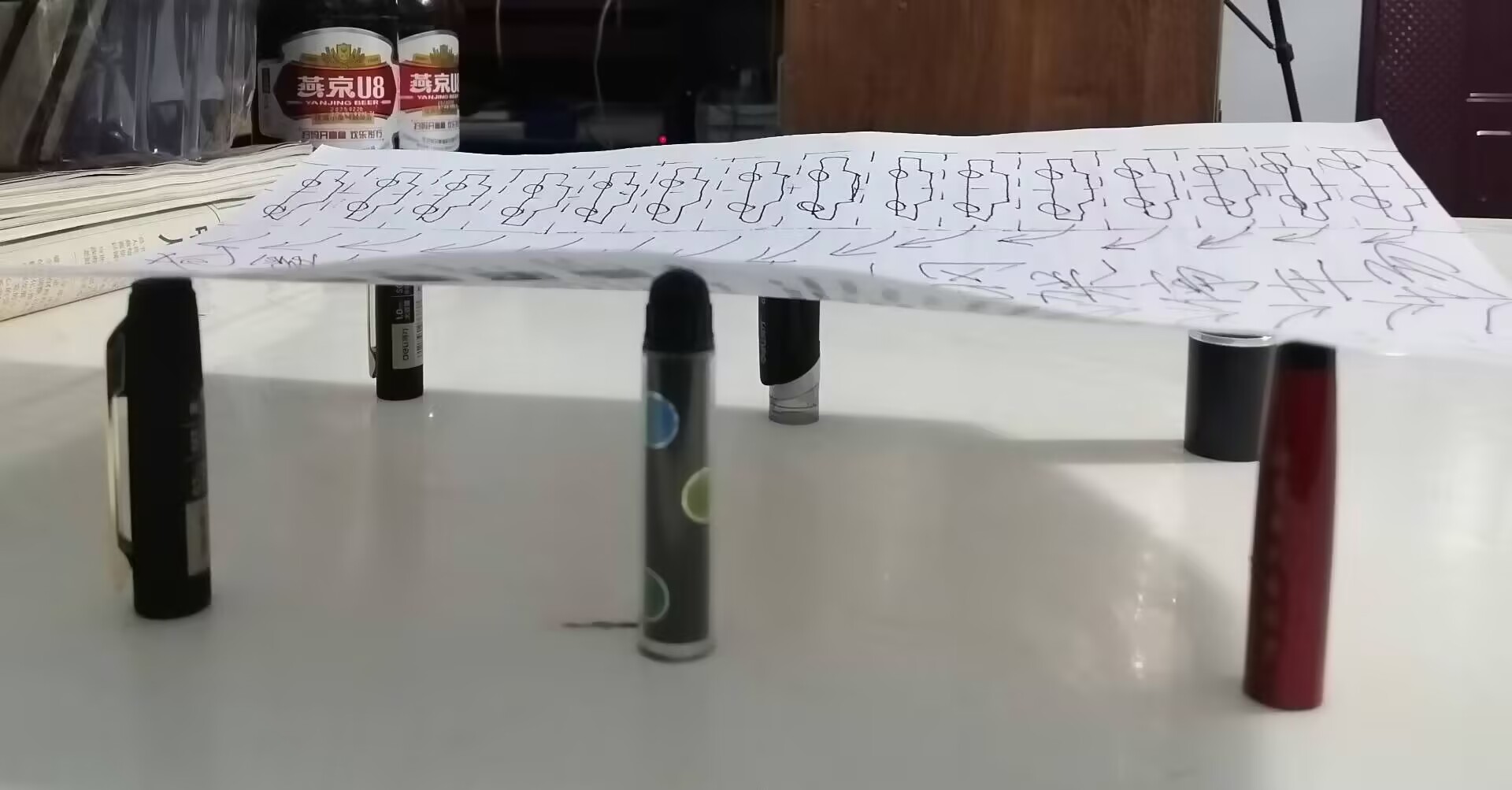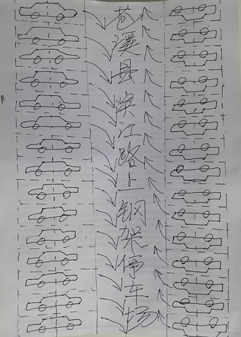 【编者按】根据文策2张手画草稿图画面和文字描述,勾画一幅具有三维立体感的、其主题为在苍溪县滨江路现有通车的往返4车道路面上架设不影响视线光线镂空的钢架结构露天停车场,其上面停车,下面有多辆车辆来回行驶、通行如常,上面停车与下面车辆通行互不影响,高架、钢架平面停车场、总长约1·5公里,桥面两边设置一米高的透明玻璃护栏,桥面两侧每隔300米设置一处司乘人员上下步行楼梯。滨江路及停车场内侧一边为各种餐饮店铺,滨江路及上层停车场外侧一边为绿树成荫与嘉陵江面的现实设计与畅想——