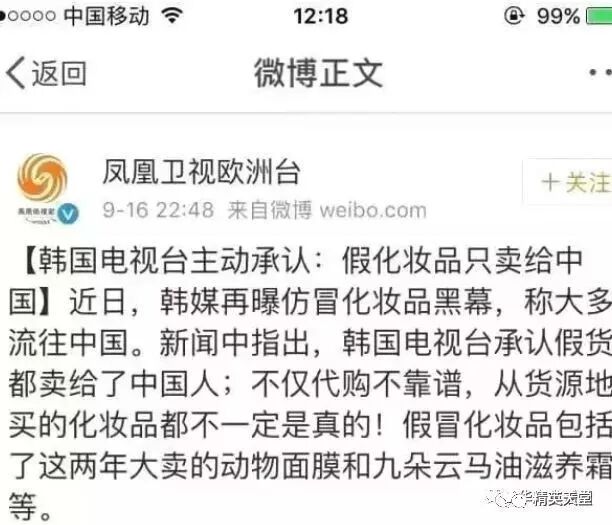 更可恨的是,这些产品会在中国游客聚集的各大商场上架,因为售价较低,往往也会吸引不少韩国人想购买,但出于“民族”情怀,商家也都会拒绝售卖,他们只卖给中国游客。 擦亮眼睛,保护好自己的钱包和切实的利益,毕竟“天下乌鸦一般黑”。理性看待世界,切莫过于信赖所谓的海外品质。遇到类似问题,大胆说出来,莫要让你的忍气吞声,成为他们变本加厉的资本,也不要用你的钱包,去滋养一群侮辱中国人“人傻钱多”的无良群体。   来源:中国地方发展通讯社  责编:不祥  主编:文策   |