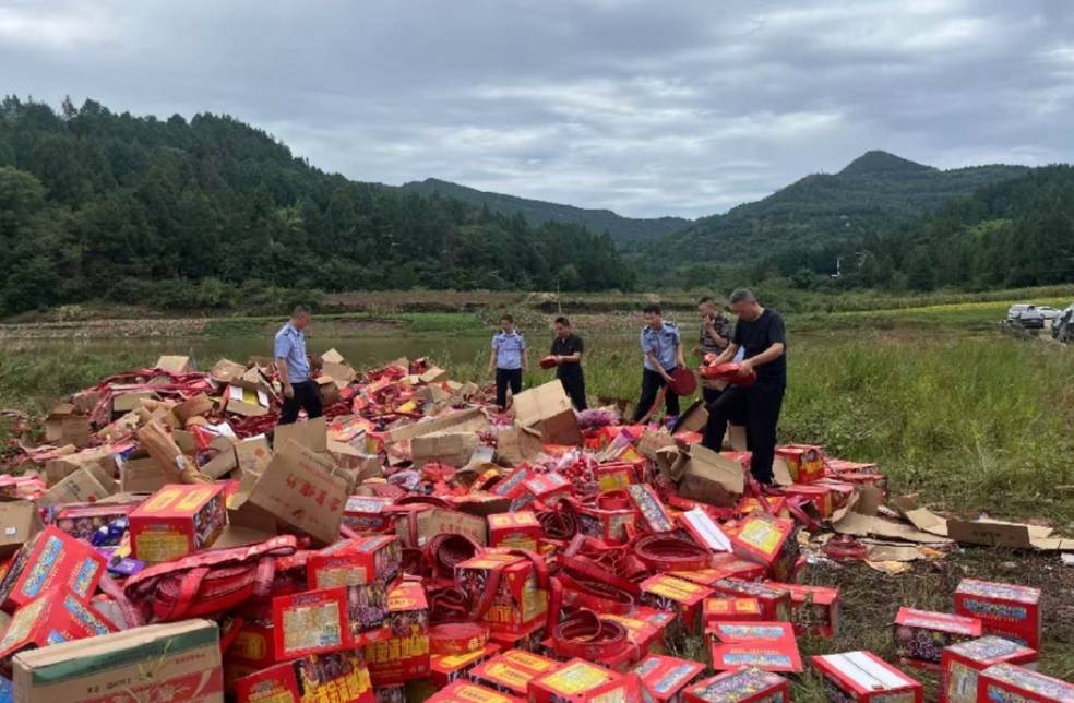 据龚庆榆讯 近日,苍溪县应急管理局联合县公安局等部门在百利镇李家河一处安全区域开展非法烟花爆竹集中销毁行动。
